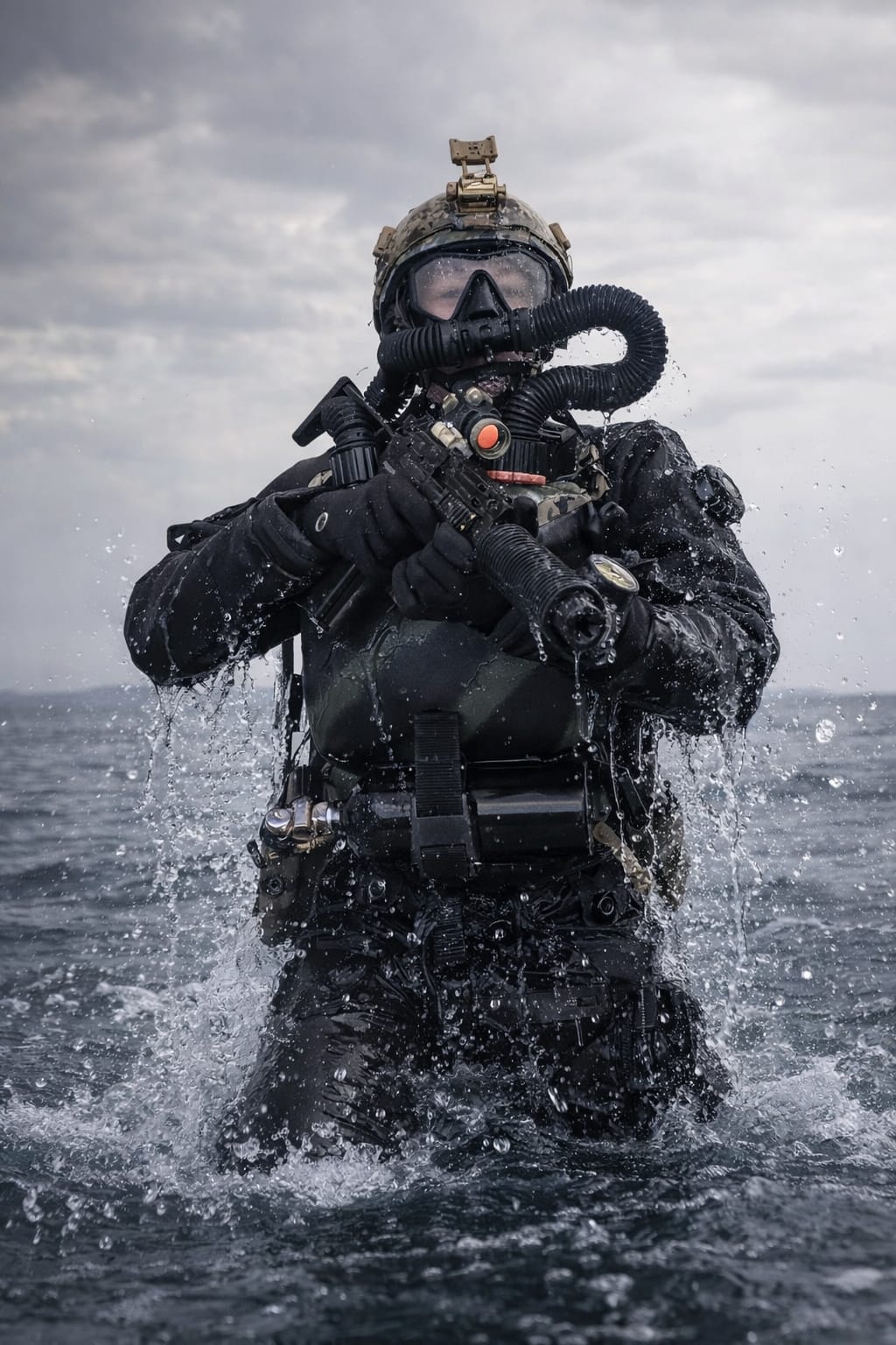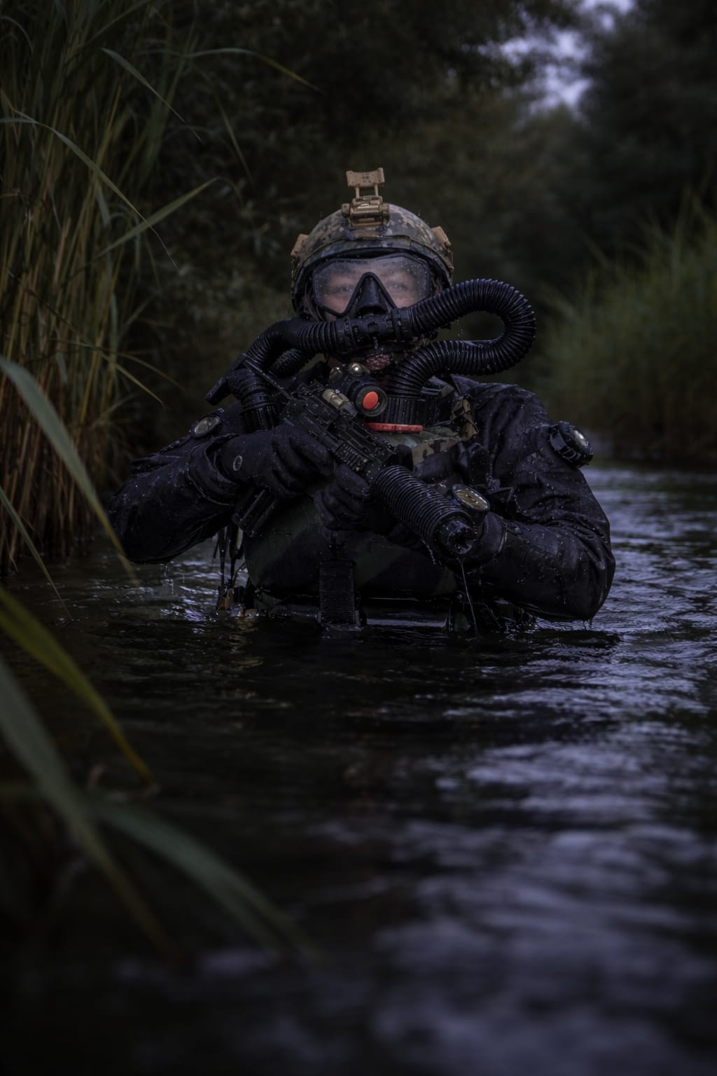 Für weniger trockene Einsätze gibt es auch die Option auf Tauchanzug.